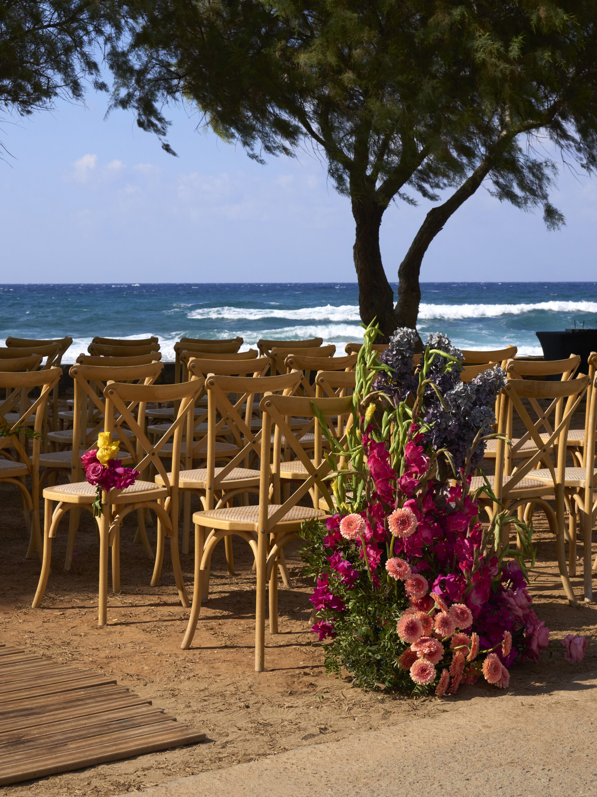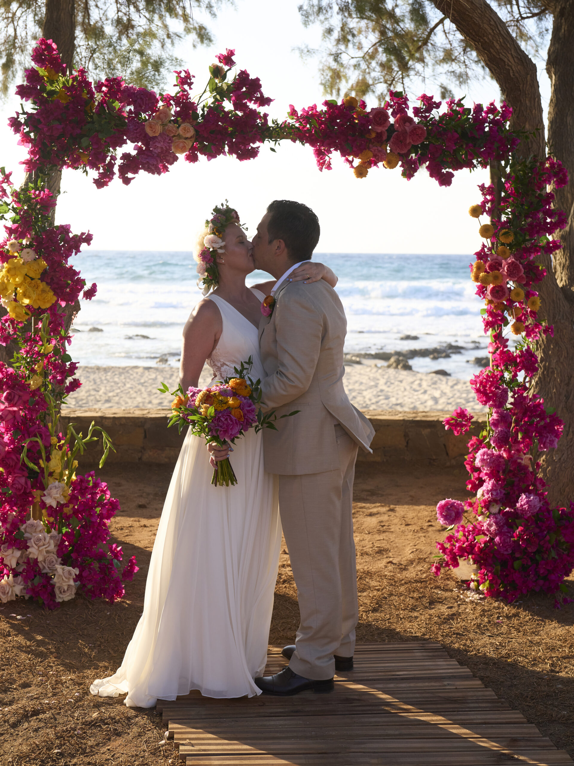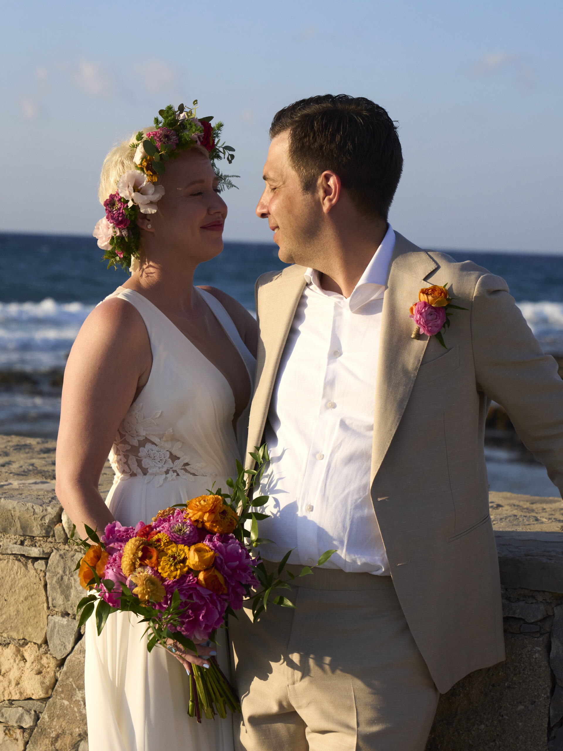 Set on the sun-kissed shores of Crete, Tessa & Dimitris’ wedding was a celebration of bold color, coastal romance, and effortless Mediterranean elegance. Surrounded by the sound of waves and the island’s natural beauty, their day unfolded in vivid florals, handcrafted details, and a warm, joyful atmosphere that felt unmistakably Greek.